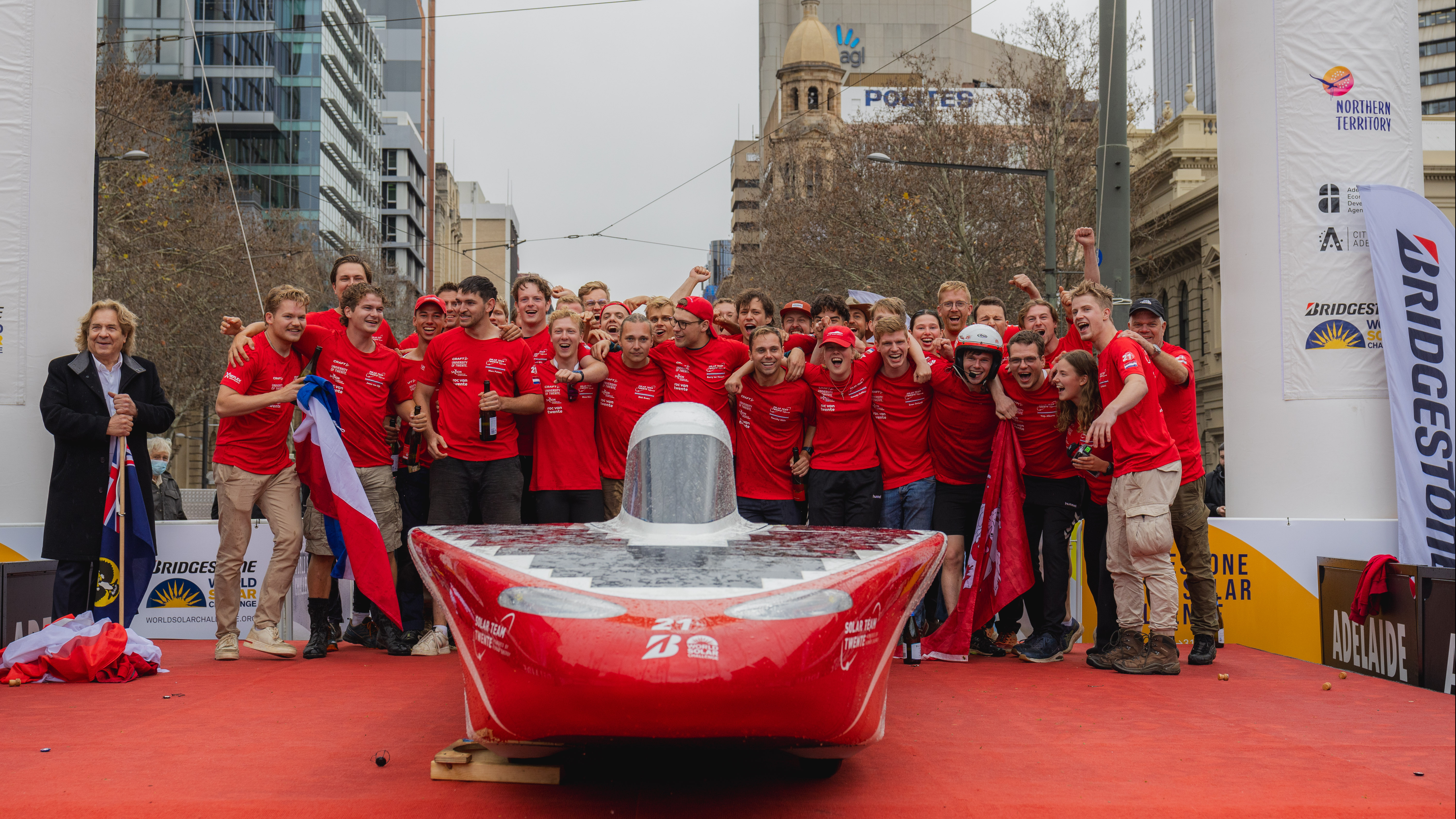 Studenten van de TU Delft hebben in Australië voor de achtste keer de World Solar Challenge gewonnen. Het Solar Team Twente kwam als tweede over de finish van de race voor zonneauto's.