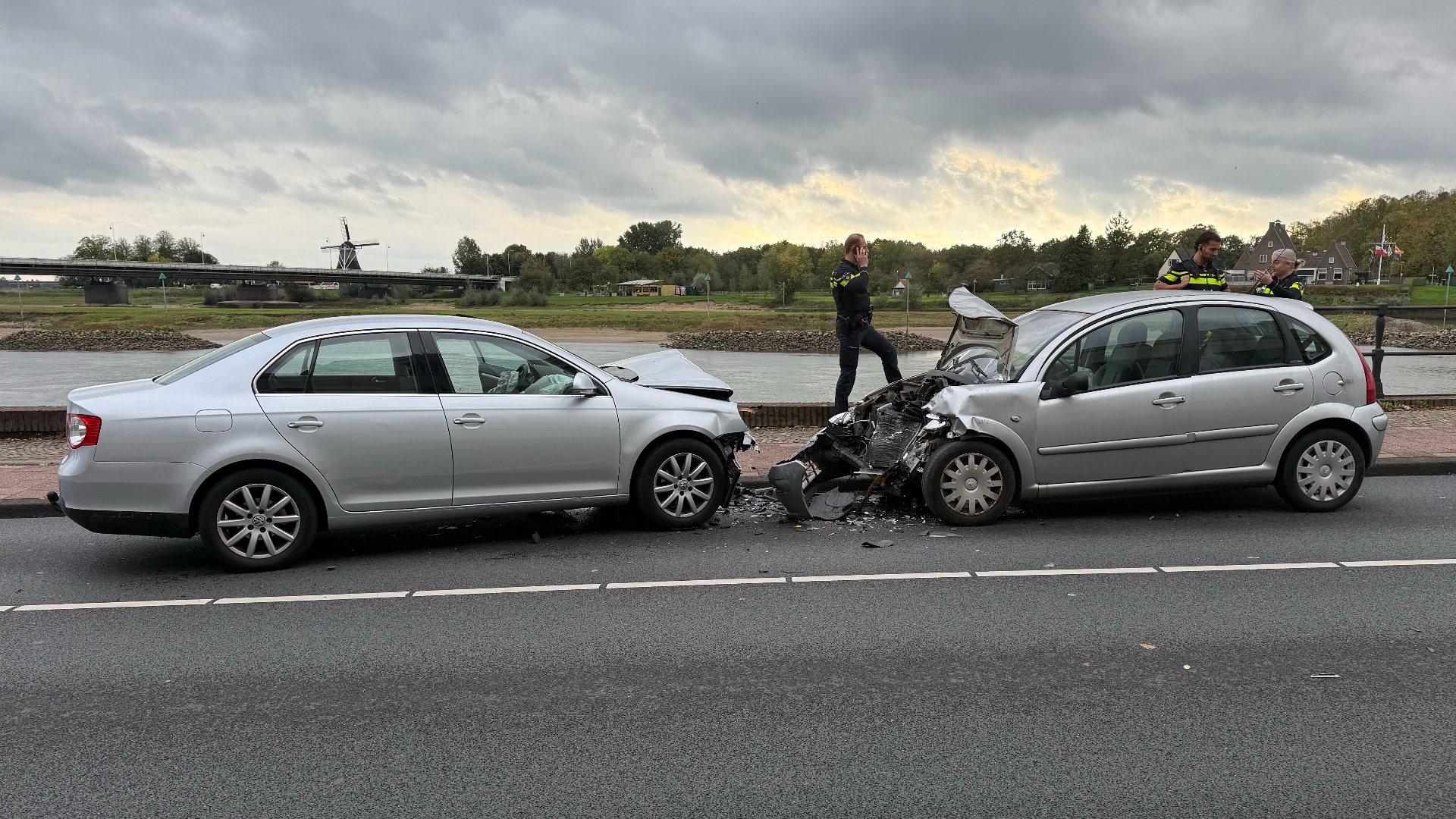 dinsdag 21 oktober 2025, 16:29 uurOp de Welle langs de IJssel in Deventer zijn vanmiddag twee auto’s frontaal op elkaar gebotst.