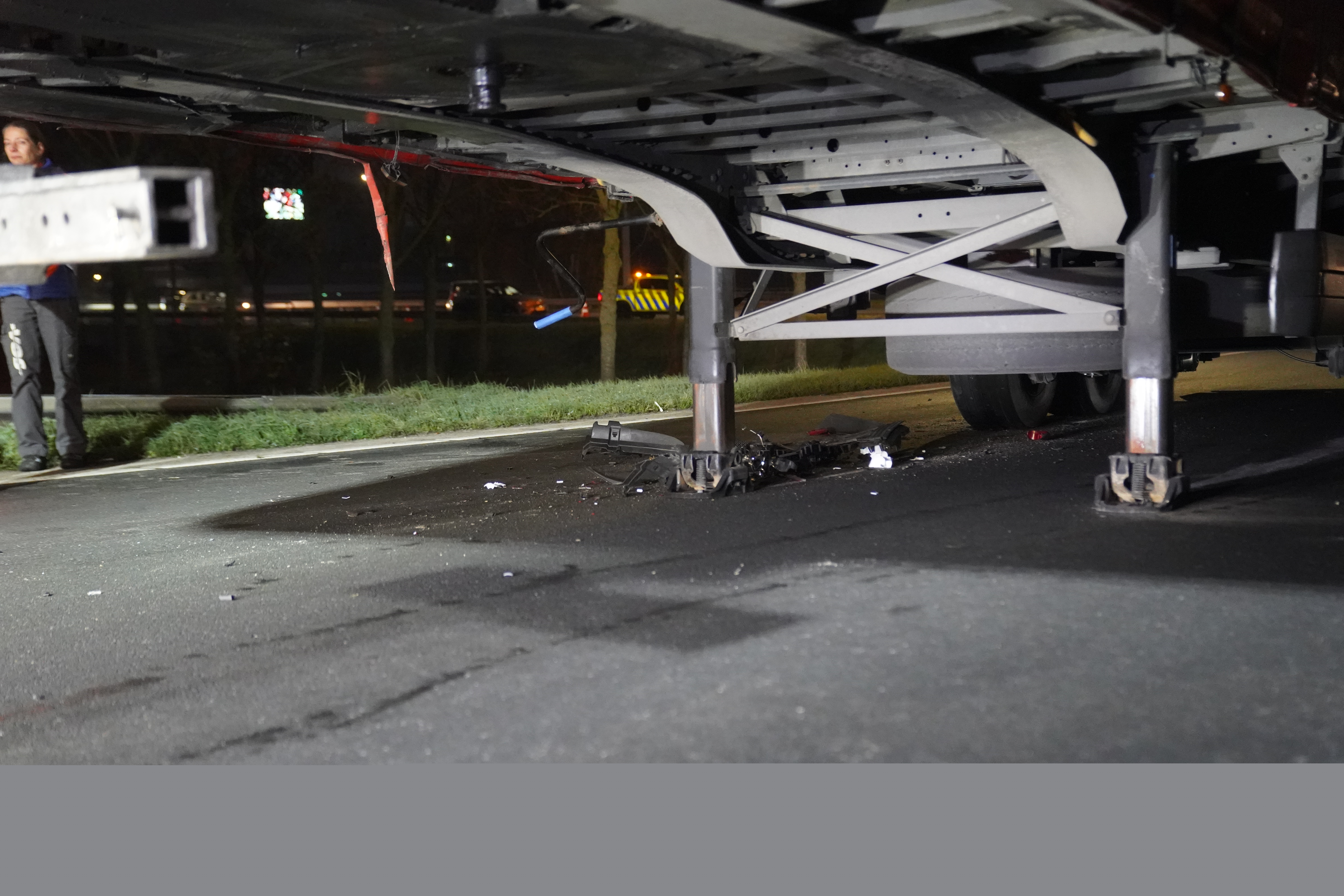 Vrachtwagen verliest trailer op oprit bij Deventer