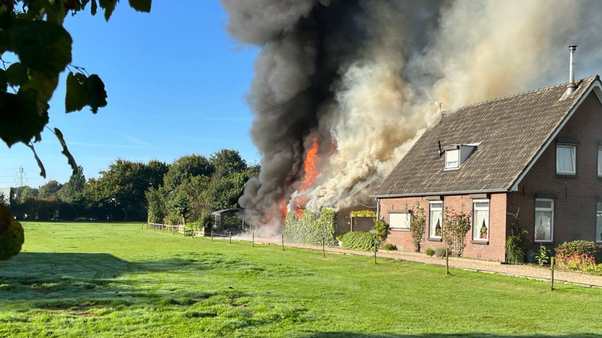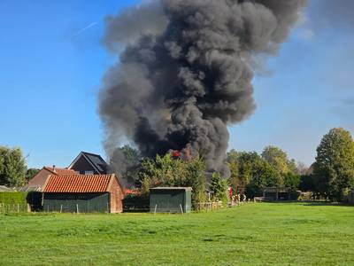 Een schuur in Didam met daarin mogelijk pony's staat zondagochtend in brand. De Veiligheidsregio Noord- en Oost-Gelderland waarschuwt omwonenden ramen en deuren gesloten te houden vanwege de hoeveelheid rook.