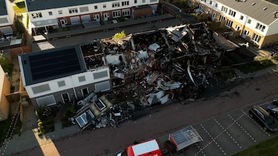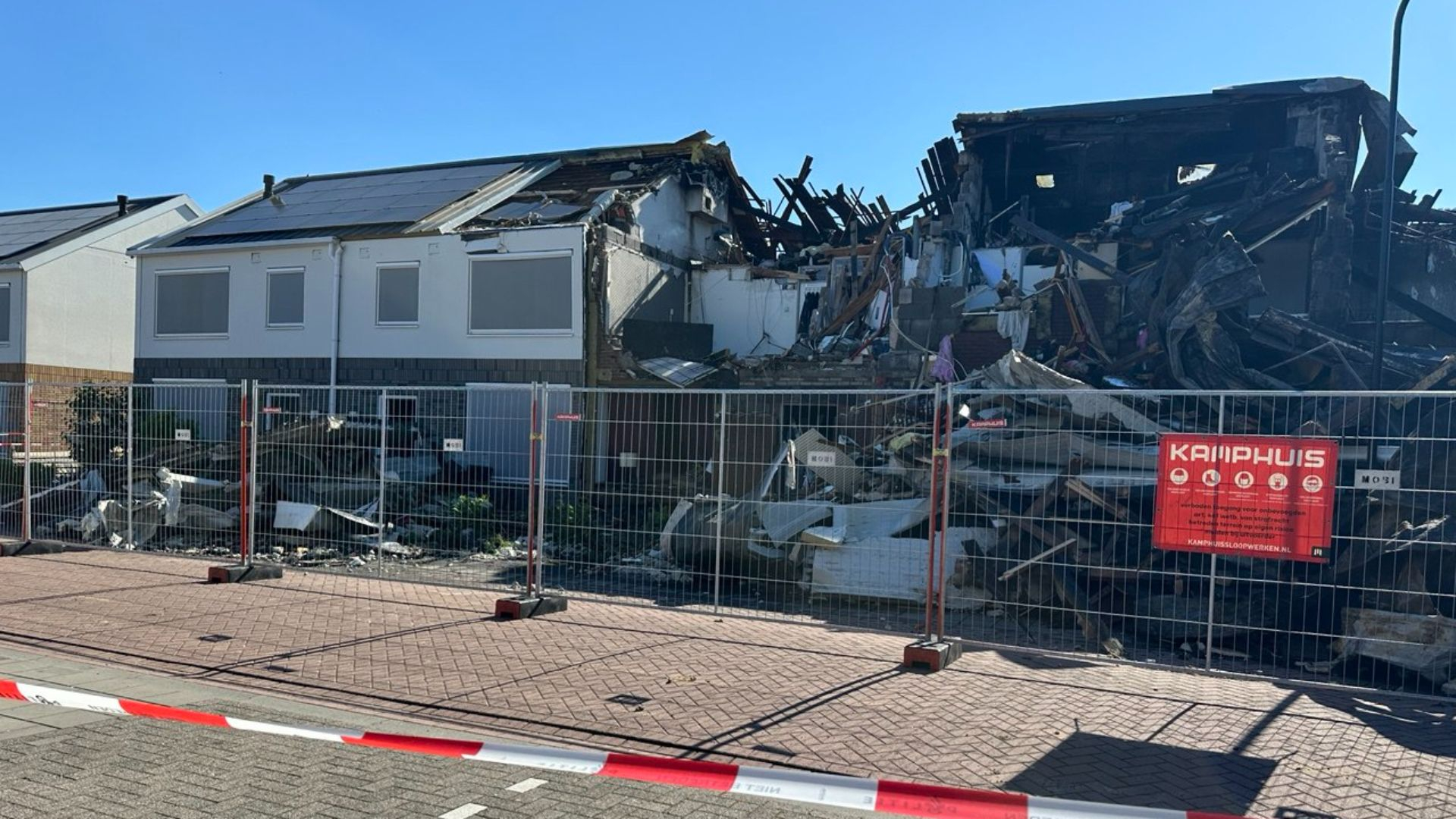 woensdag 14 mei 2025, 12:24 uurDe scherpe rookgeur prikkelt direct de neusgaten. De huizen zelf zijn na alle commotie van dinsdag veranderd in een stilleven. De buitenmuren zijn pikzwart.