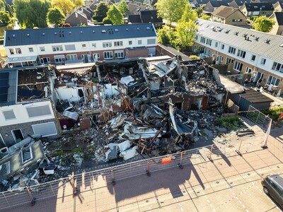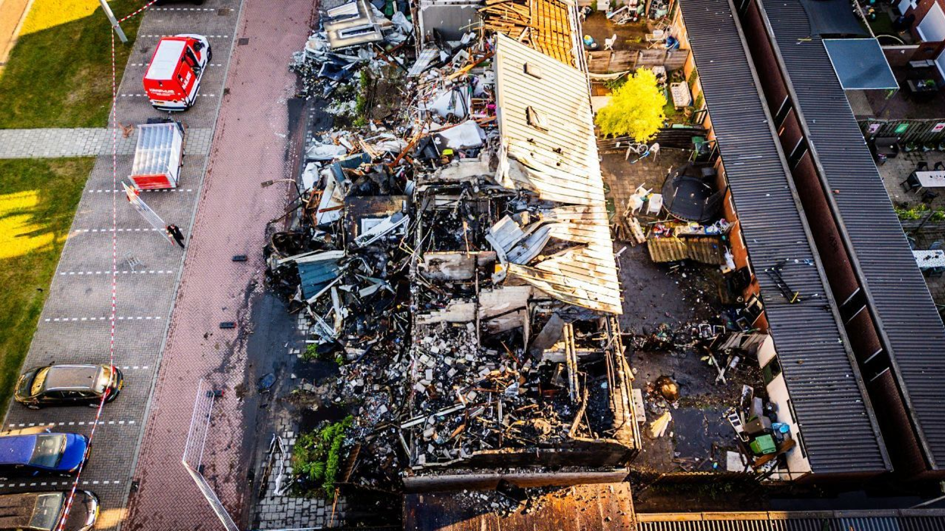 Bergen puin, verkoolde resten en gesmolten gevelbekleding. Van het huizenblok in Didam waar vannacht een grote brand uitbrak, is niet veel meer over. Vier van de zes woningen aan de Begoniastraat zijn compleet verwoest. Een drone legde de ravage bij daglicht vast. Bekijk de beelden hieronder.