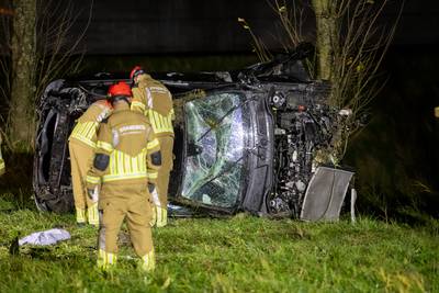 Auto crasht op afrit A4 en slaat meerdere keren over de kop