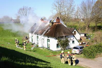 Aan de Waalbandijk in Dodewaard woedt een grote brand in een huis met een rieten dak. Vier honden zijn door de hulpdiensten in veiligheid gebracht. De bewoners konden op tijd hun woning verlaten.