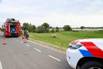 Wielrenner onderuit op Waalbandijk in Dodewaard, traumahelikopter gealarmeerd