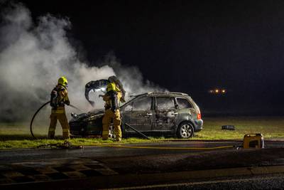Auto brandt volledig uit op N317 bij Doesburg, mogelijk al dagen in de berm geparkeerd