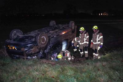 Auto belandt op zijn kop in weiland, dader gevlucht