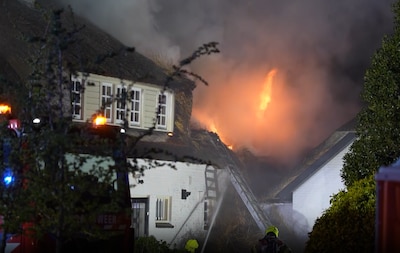 Blikseminslag veroorzaakt grote brand bij woning met rieten kap