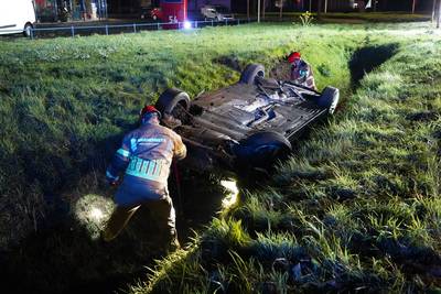 Achtervolging eindigt met crash, auto op zijn kop in de sloot