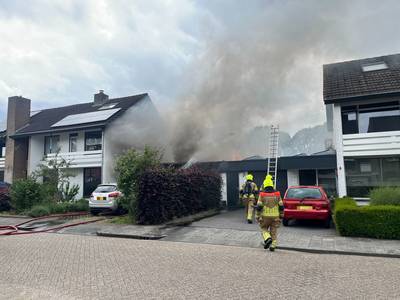 DONGEN - De brandweer is zaterdagmiddag uitgerukt voor een brand bij een woning aan de Kortenaerstraat in Dongen. De brand ontstond bij een garage van een twee-onder-een-kapwoning, waarna het vuur oversloeg naar de aangrenzende garage. De woonhuizen zijn tijdelijk onbewoonbaar.