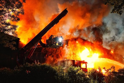 Grote uitslaande brand in loods