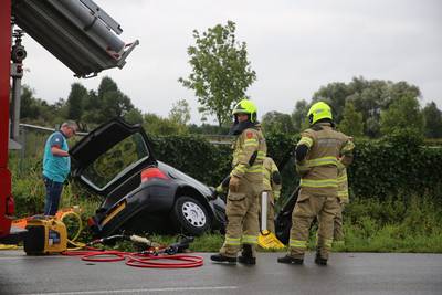 Auto in de sloot bij de beruchte bocht Krakkedel, bestuurster raakt gewond