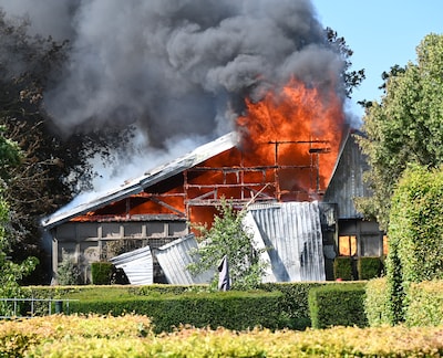 Zeer grote brand in Dronten legt boerenschuur in de as