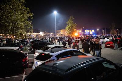 Op het parkeerterrein van de Makro in Duiven verzamelden zich donderdagavond honderden mensen met hun auto's. Ook waren er veel agenten op de been.