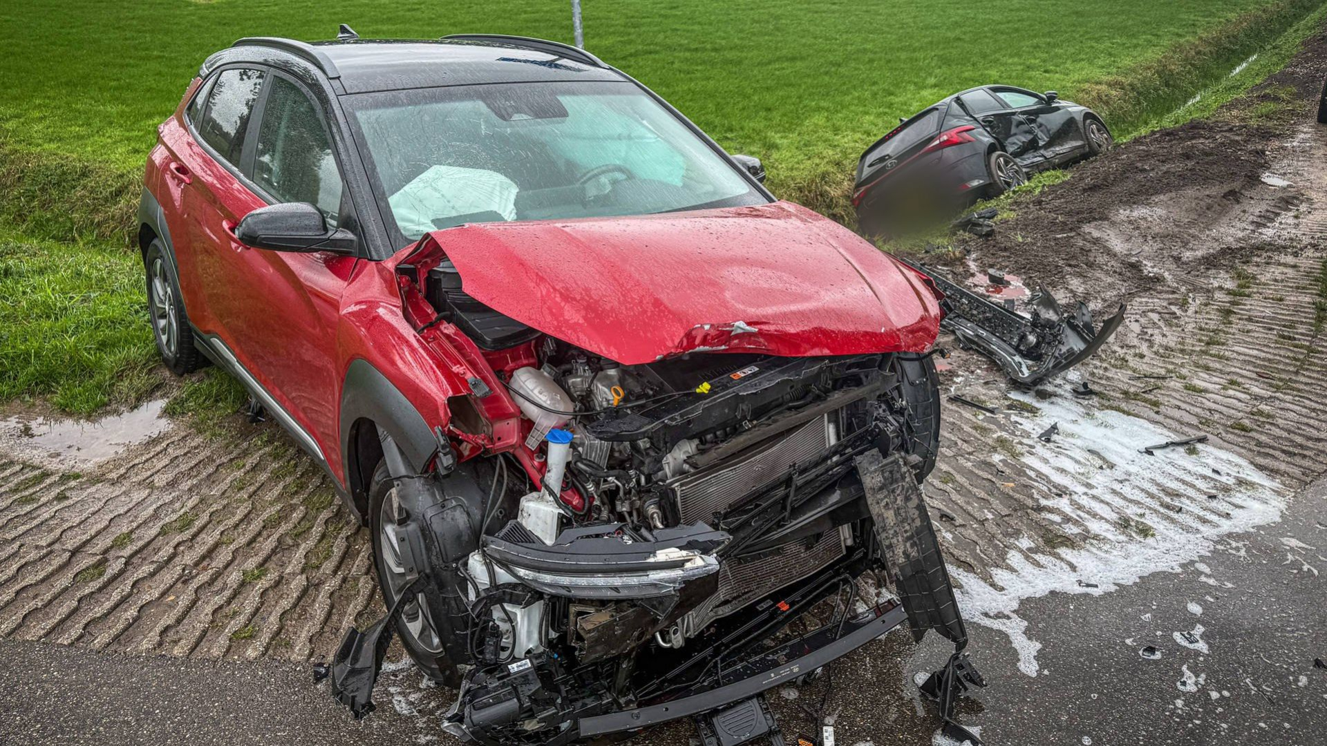 Auto belandt in greppel na botsing, twee personen gecontroleerd door ambulance