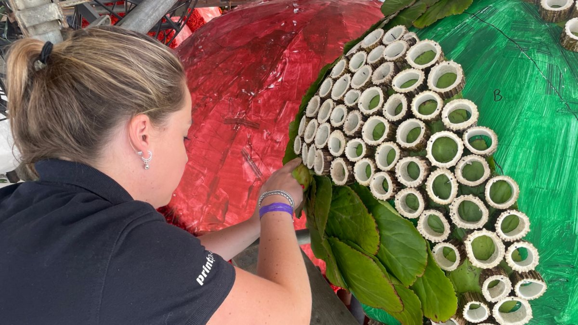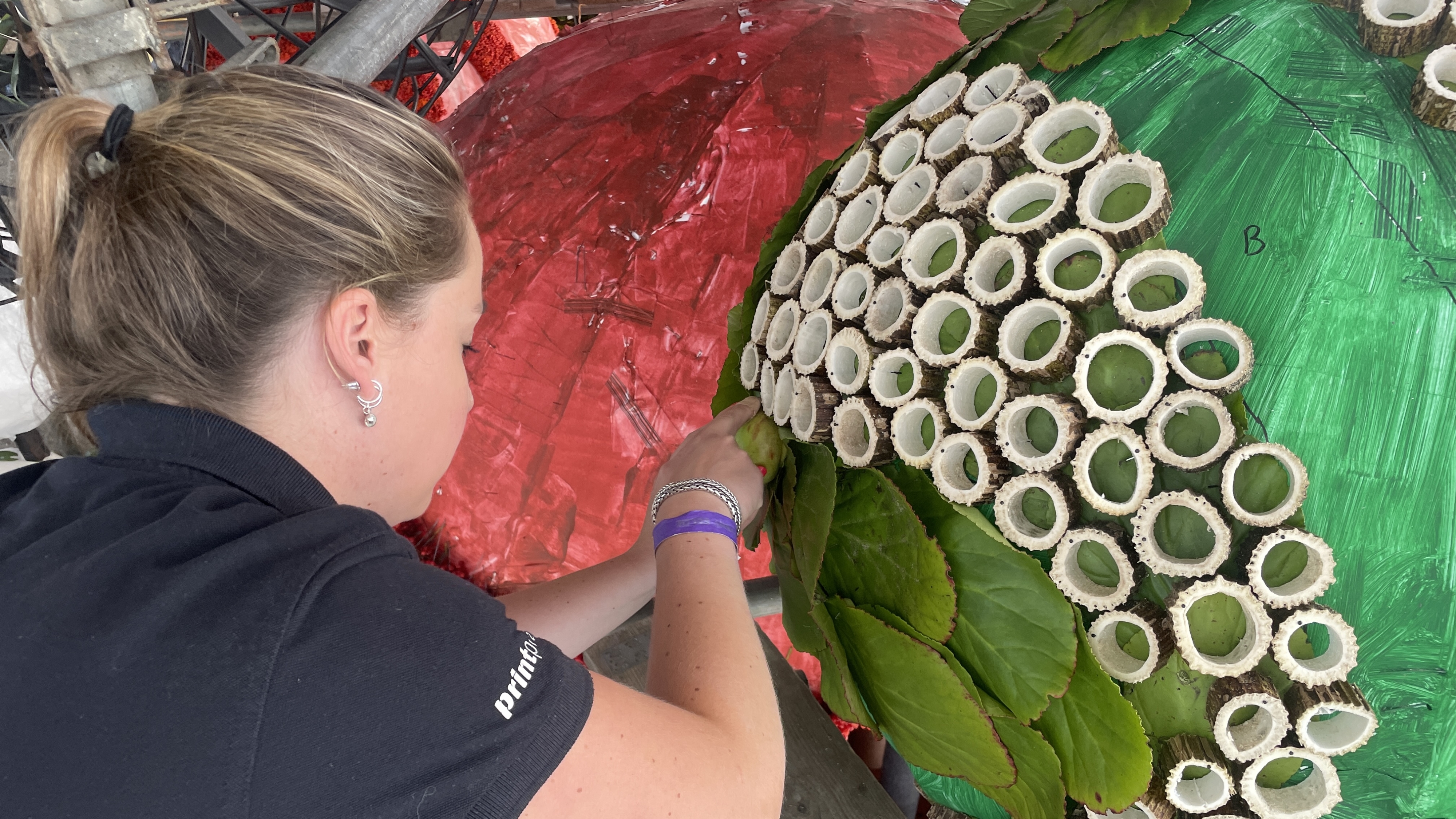 Laatste hand aan corsowagens in Eelde: 'Minder dahlia's, maar dat maakt het feest er niet minder op'