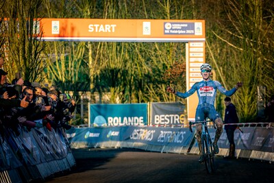 zondag 12 januari 2025, 21:25 uurTibor Del Grosso (21) uit Eelde heeft vanmiddag in het Brabantse Oisterwijk de Nederlandse titel bij de elite veldrijden gewonnen. Hiermee heeft hij ook z'n Nederlandse titel bij de beloften, de mannen tot 23 jaar, geprolongeerd. Beide categorieën reden samen in één wedstrijd.