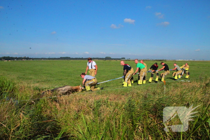 zondag 15 september 2024, 14:52 uurZondagochtend heeft de brandweer Eemnes met veel krachtinspanningen een stier uit het water gehaald in de polder op de Noord Ervenweg bij Eemnes.