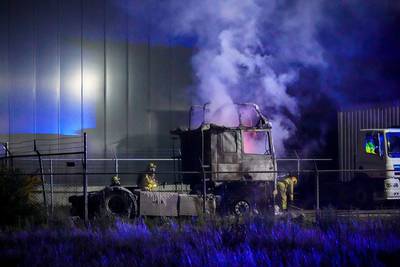 Vrachtwagen brandt volledig uit op terrein van transportbedrijf