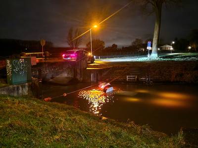 Op de 2e Weteringsewal in Elst is vrijdagavond een auto te water geraakt. De bestuurder van het voertuig is met onbekend letsel meegenomen naar het ziekenhuis.