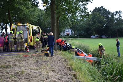 Vier inzittenden uit auto bevrijd na botsing tegen boom; voertuig eindigt omgekeerd in sloot