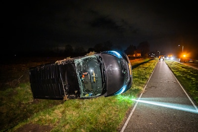 Bestelbus op zijn kant langs de N836, bestuurder spoorloos