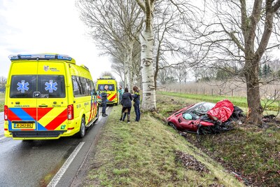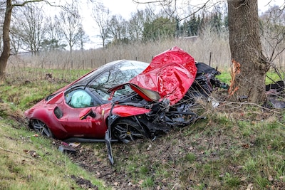 Ferrari compleet in puin na botsing tegen boom bij Emmen
