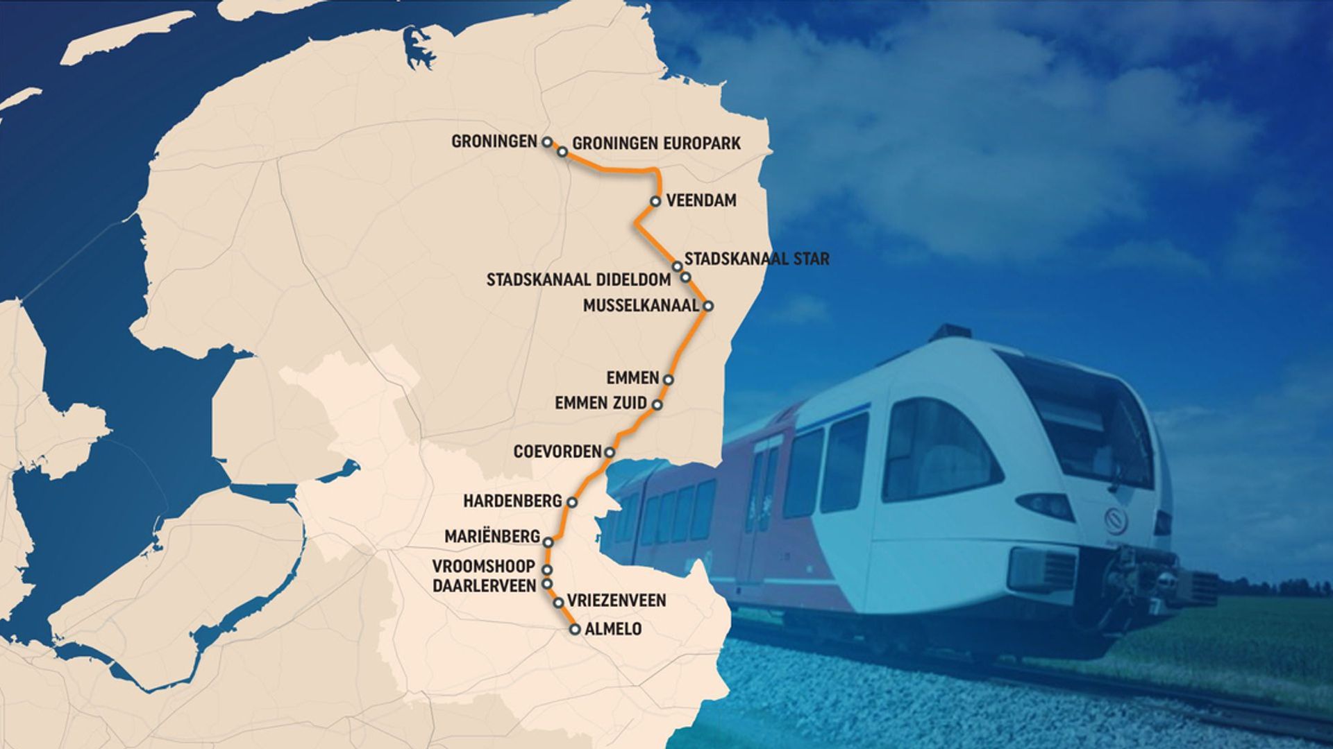 Met de trein in 52 minuten van Emmen naar Groningen. Ondanks de kostenpost van 1,7 miljard euro kan als alles meezit tussen 2032 en 2035 over de Nedersaksenlijn gereden worden.