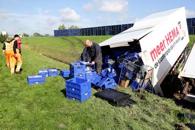 Vrachtwagen en goederen van Hema belanden in sloot bij A2, vanavond rijstroken dicht voor berging