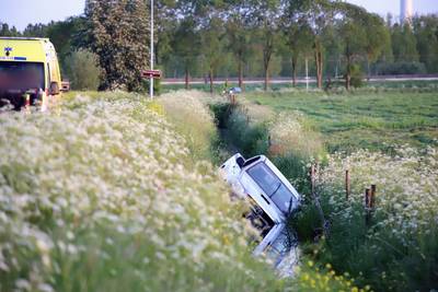 Auto op zijn zijkant in de sloot Enspijk: een gewonde