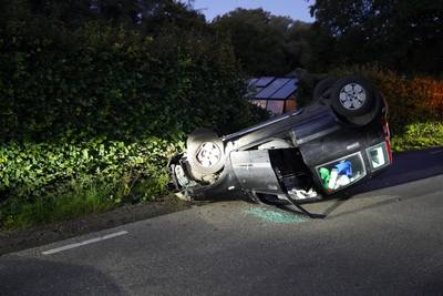 Ongeluk in Ermelo: vrouw verliest macht over het stuur en landt ondersteboven op het wegdek