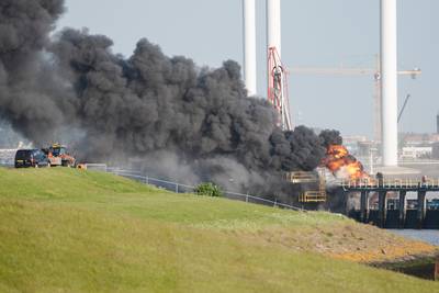 Ontruiming op chemiepark is voorbij; scheepsbrand onder controle