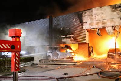 Grote brand in industriegebouw in Geldermalsen, schade bij meerdere bedrijven