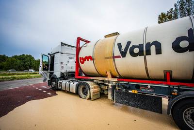 Gist wordt uit tankwagen gedrukt, hele omgeving stinkt naar bier