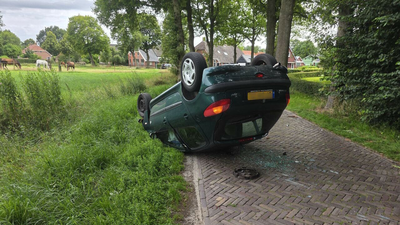 Auto op de kop beland na eenzijdig ongeval bij Gieten