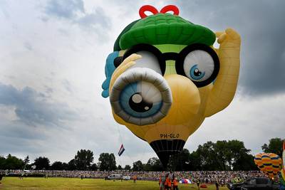 zaterdag 12 augustus 2023, 21:39 uurHet is een bijzondere heteluchtballon, die van Alex Jan Barends. Eentje met een boodschap. Van Mister Globie: we moeten zuinig zijn op de aarde. Een beetje lief zijn voor elkaar. Alleen wilde Mister Globie niet de lucht in tijdens Ballonfestival Grave.