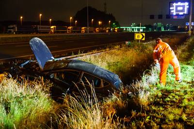 Automobilist crasht op merkwaardige wijze in berm langs A27