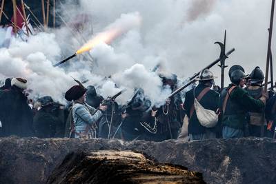 Vanuit loopgraven bestoken soldaten elkaar met kanonnen en musketten. Kruitdampen ontnemen het zicht op het slagveld. Aan weerskanten vallen mensen schreeuwend naar de grond. Op de achtergrond staat het publiek rijen dik te kijken. Drie dagen lang staat Groenlo in het teken van de Slag om Grolle. Wat voor evenement is dat eigenlijk?