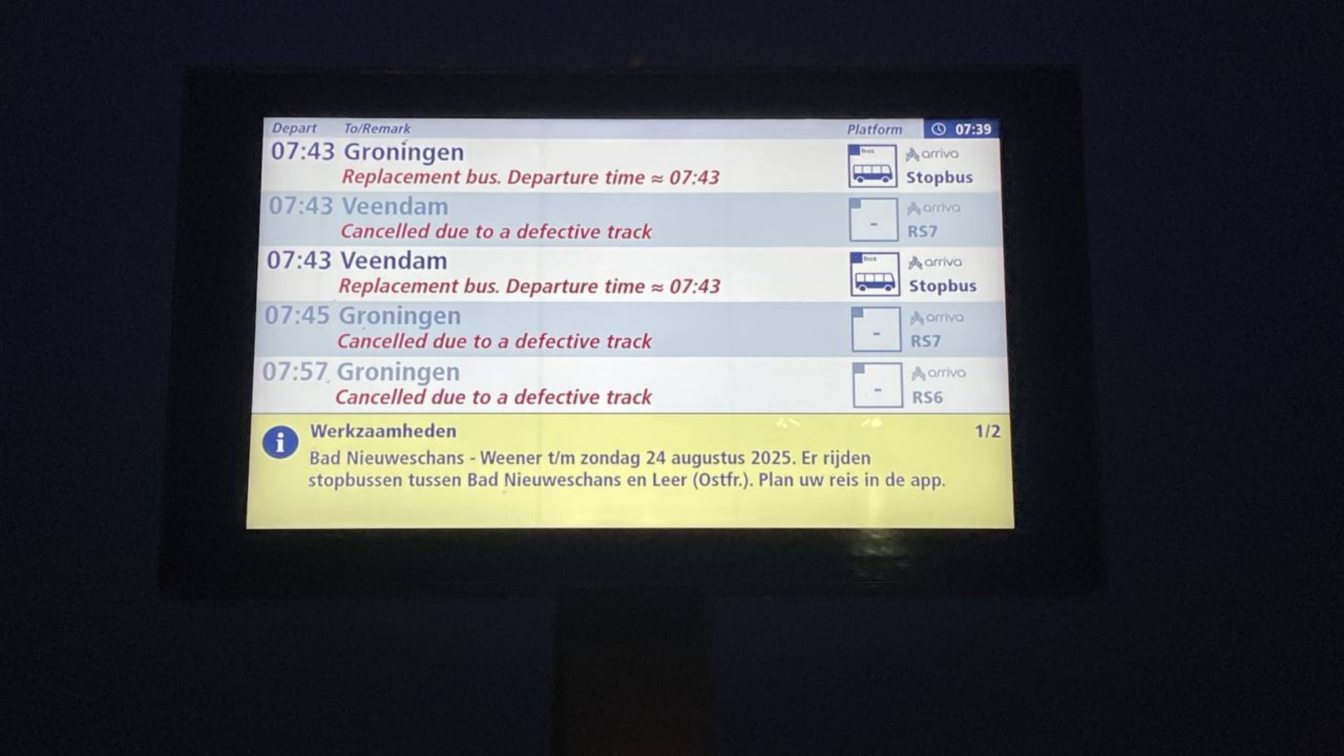 Arriva laat de treinen naar/uit Bad Nieuweschans en Veendam vrijdag weer rijden vanaf station Europapark in Groningen. Het Hoofdstation blijft de hele dag nog onbereikbaar.