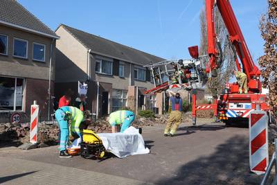 Hoogwerker hapert als een gewonde vrouw uit huis gehaald wordt in Haaren