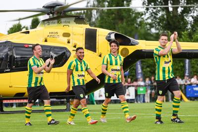 Spelers Nemelaer 7 komen met de helikopter naar de wedstrijd