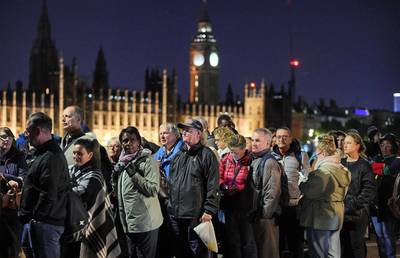 Rij voor afscheid koningin Elizabeth blijft kilometerslang