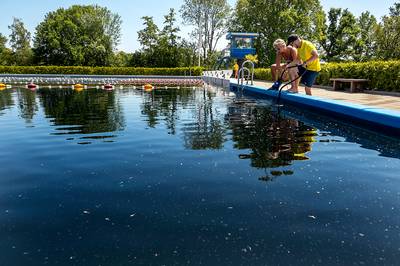 Pikzwart water zorgt ervoor dat zwembad ondanks zomerweer dicht blijft