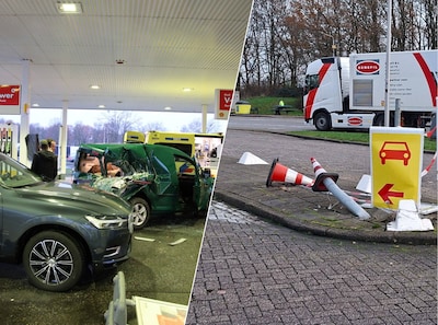 Auto vliegt op hoge snelheid tankstation A73 in, maar toevallig is deze man er ook