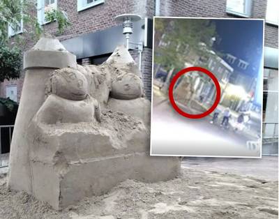Vandaal vernielt zandsculptuur in Hardenberg, maar hij en z'n groepje staan op beeld