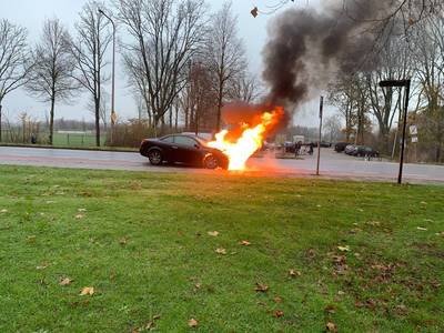 Auto vliegt tijdens rijden in brand in Hardenberg
