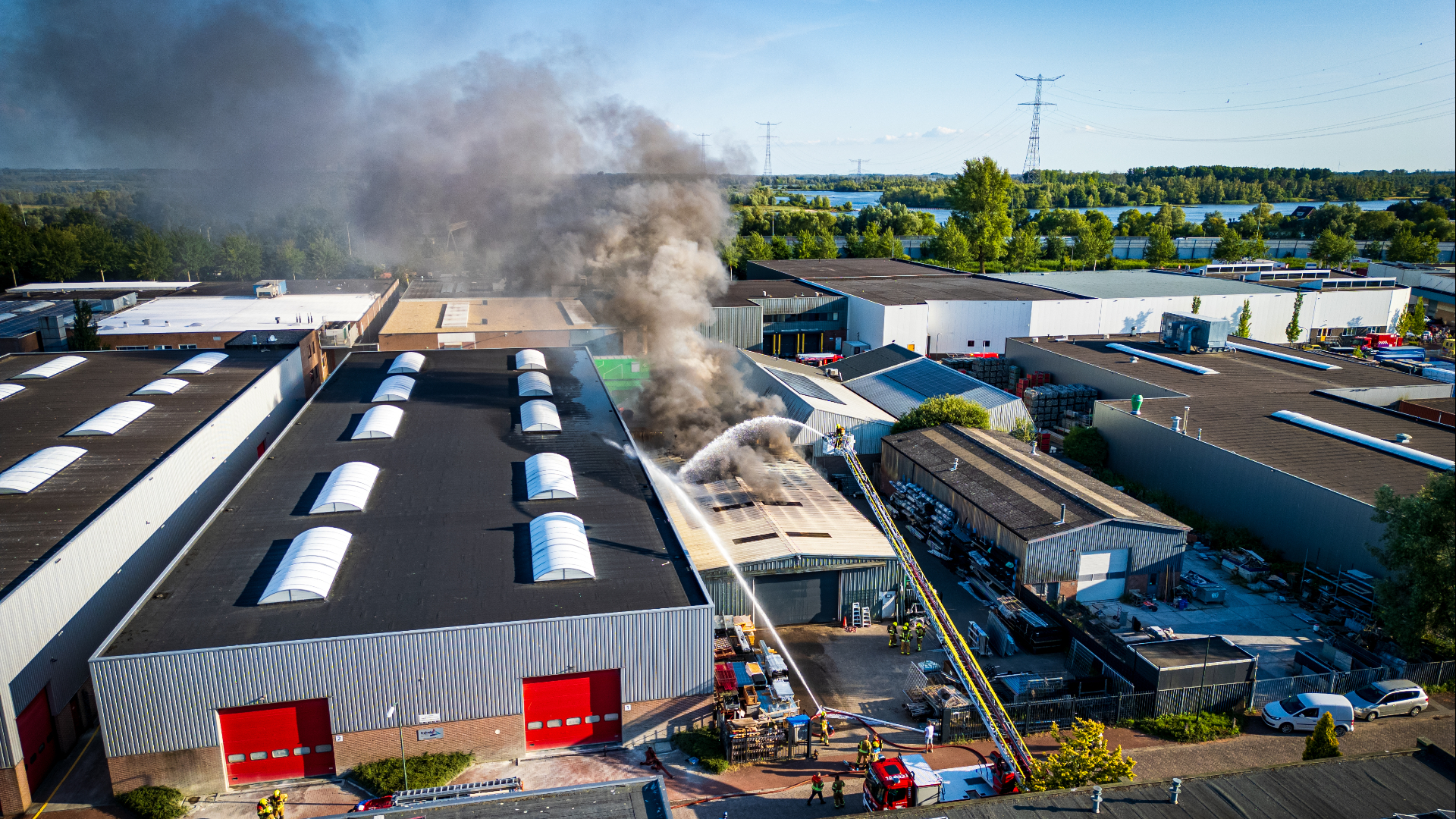 Zeer grote brand en ontploffingen in loods op bedrijventerrein geblust