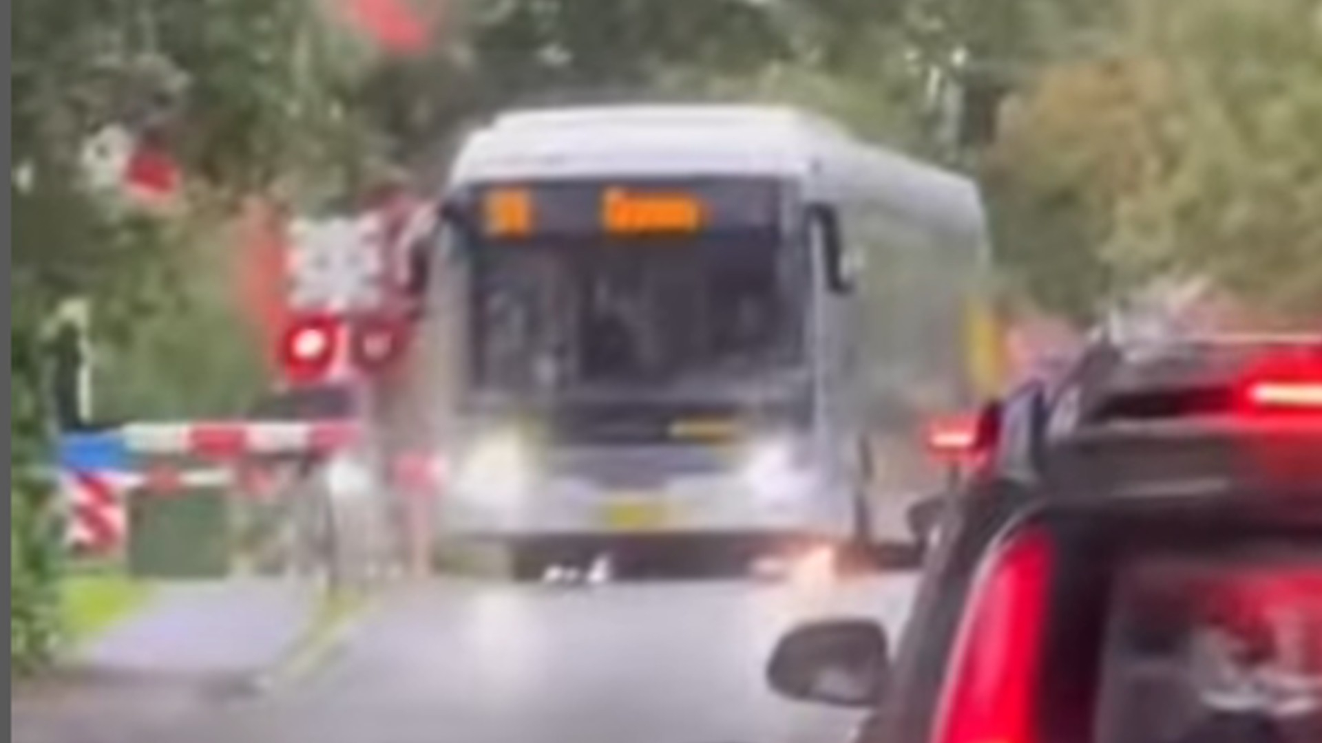 Video | Chauffeur rijdt met lijnbus over gesloten spoorwegovergang in Haren