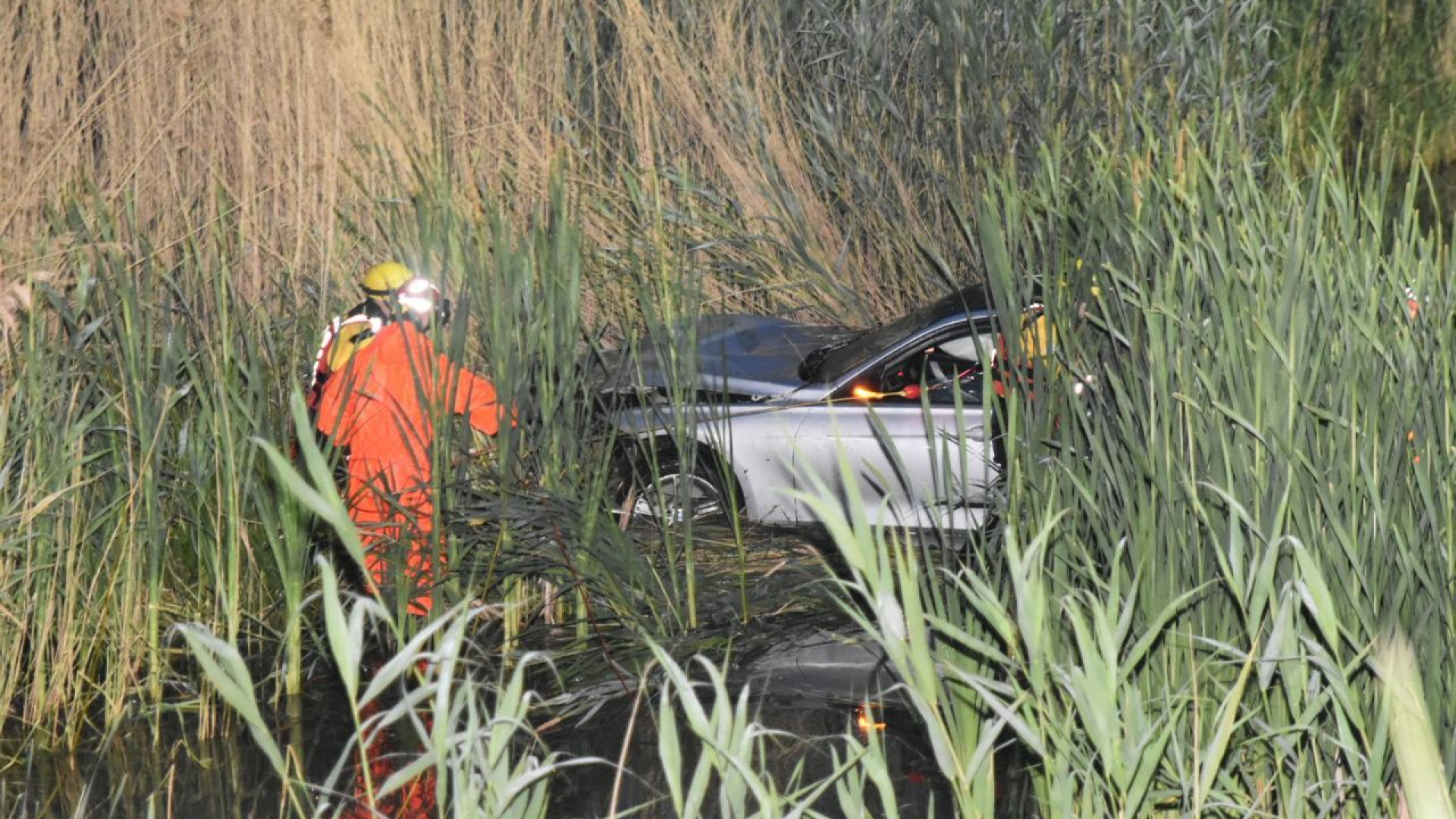 Auto belandt in het water na achtervolging, bestuurder door brandweer bevrijd