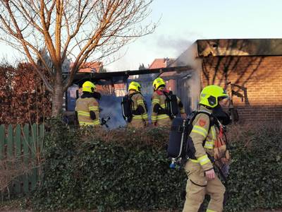 HEELSUM - De overkapping van een woning aan de Verleurweg in Heelsum is kort na 17.30 uur in brand gevlogen. De bewoners was op een houtvuurtje aan het koken, ging even naar binnen en viel in slaap.